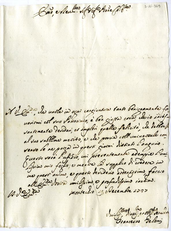 Lettera di Francesco Teloni al cardinale Annibale Albani (1727 dicembre 19)