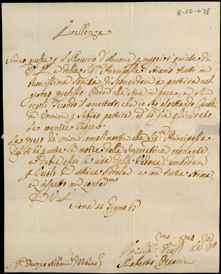 Lettere ricevute in Urbino dal Signor Principe Orazio Albani ultimo di questo nome nell'anno 1767