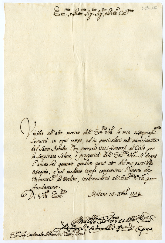 Lettera di fra Ferdinando Crinelli al cardinale Annibale Albani (1724 dicembre 13)