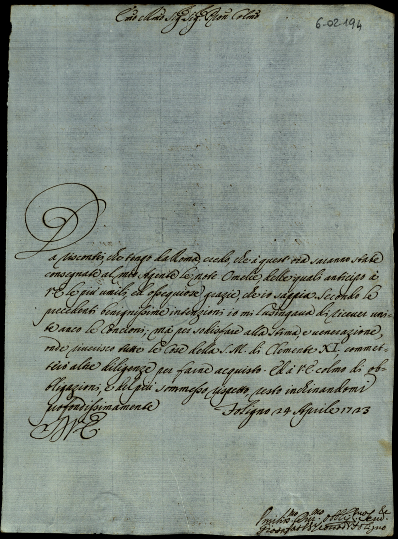Lettere di complimento e di negozio. 1723. Semestre primo