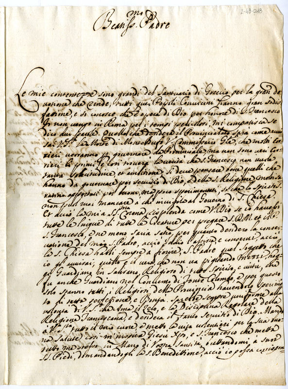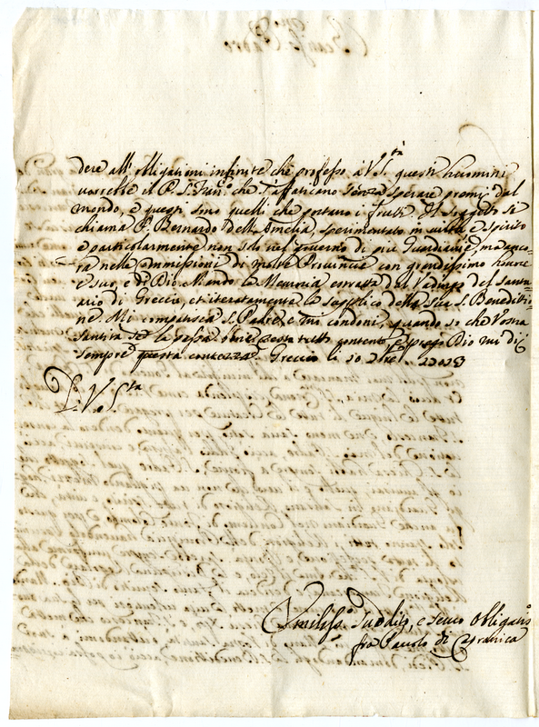 Lettera di padre Feliciano Bounardel a papa Clemente XI (1712 novembre 28)