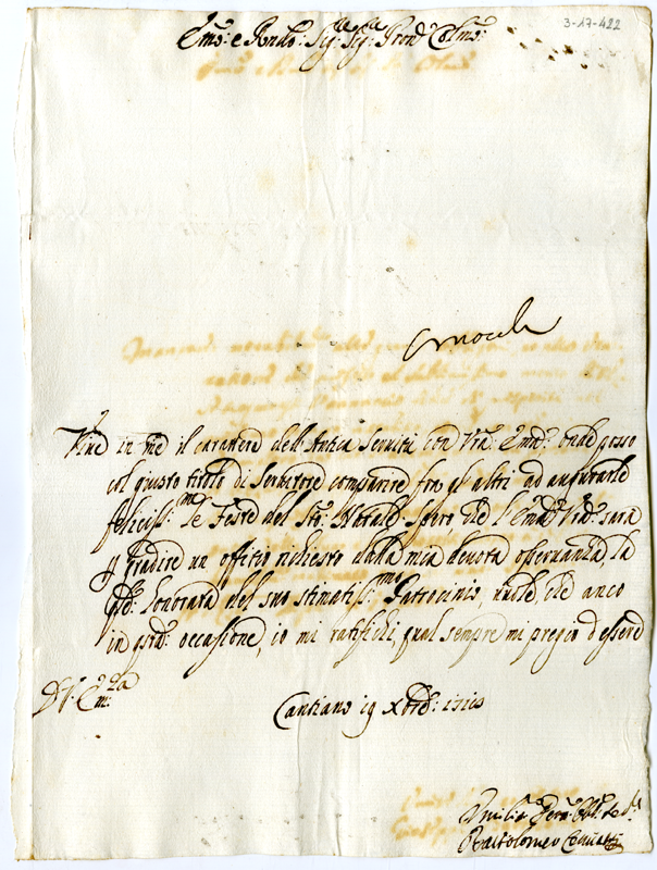 Lettera di Bartolomeo Cenciatti al cardinale Annibale Albani (1718 dicembre 19)