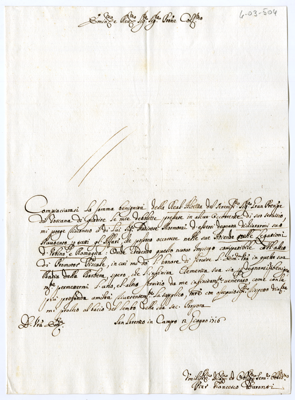 Lettera di Pier Francesco Duranti al Cardinale Annibale Albani (1716 giugno 2)