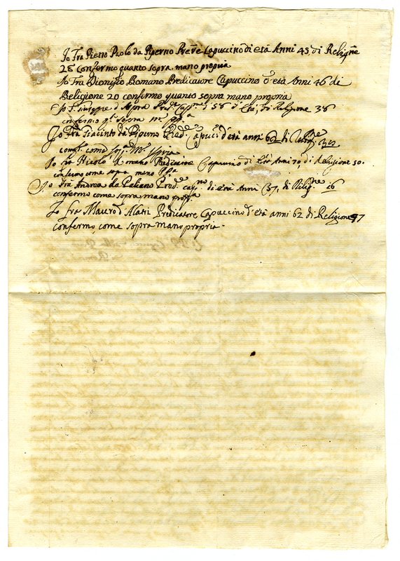 Archivio Albani|"Scritture spettanti alli frati dell'ordine de minori Conventuali, Osservanti, Riformati, Capuccini"|"Alla Santità di Nostro Signore Papa Clemente undecimo. Per li Padri Cappuccini della Provincia di Roma"|Documenti contenuti