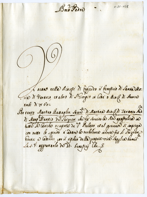 Chiede al pontefice di avere alcuni benefici nel Regno di Napoli