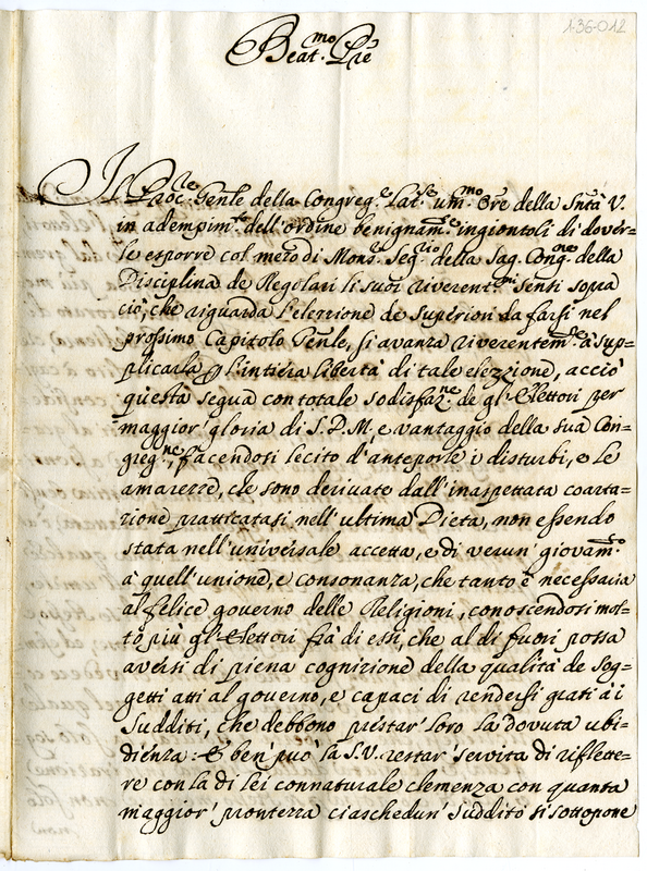 Lettera del Priore Generale della Congregazione Lateranense a Papa Clemente XI (1700-1721)
