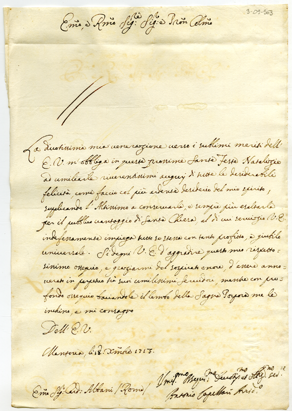 Lettera di Antonio Capellari al cardinale Annibale Albani (1713 dicembre 18)
