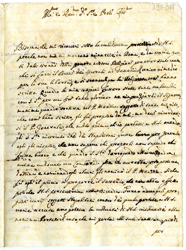 Lettera di Bartolomeo Ferro a Monsignor Crispi (1704 marzo 9)