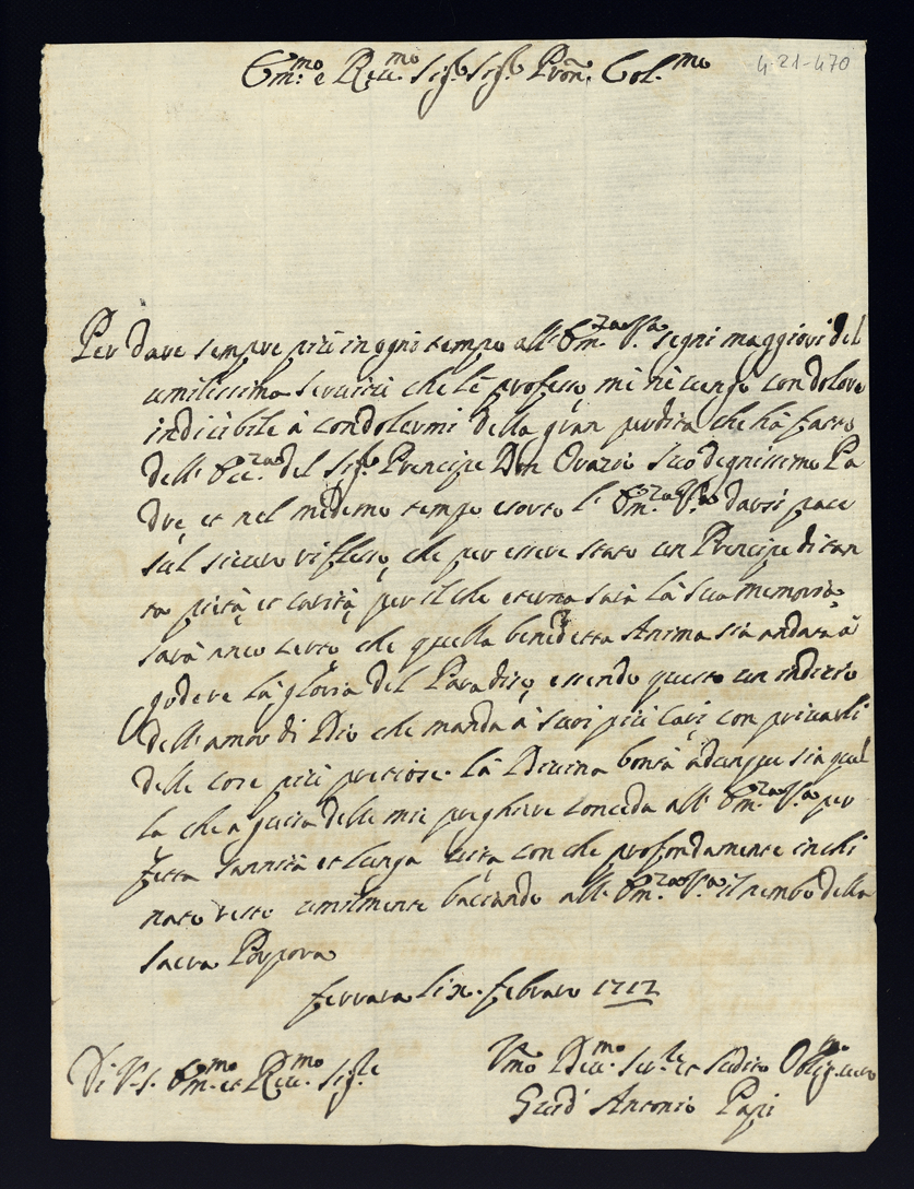 Lettere di condoglianza per la morte dell'eccellentissimo signor principe don Orazio Albani