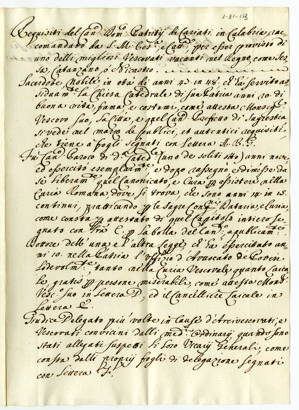 | dc.title.alternative | Requisiti del canonico Domenico Patrizi (1700-1721) | |