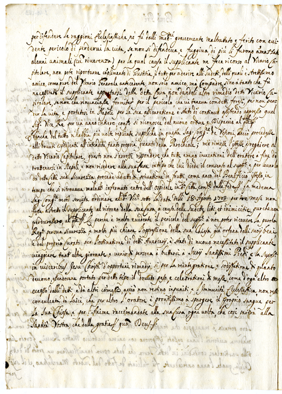 Lettera di don Loreto de Stefanis a papa Clemente XI (1700-1721)