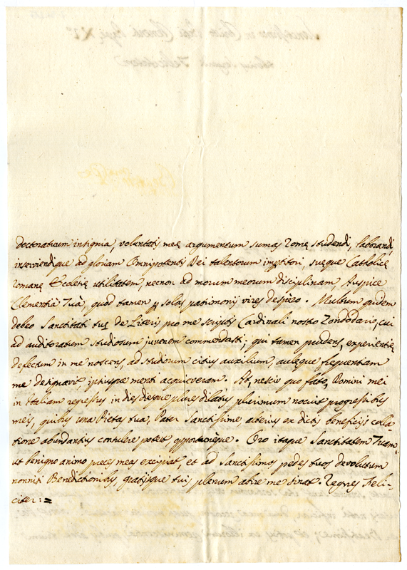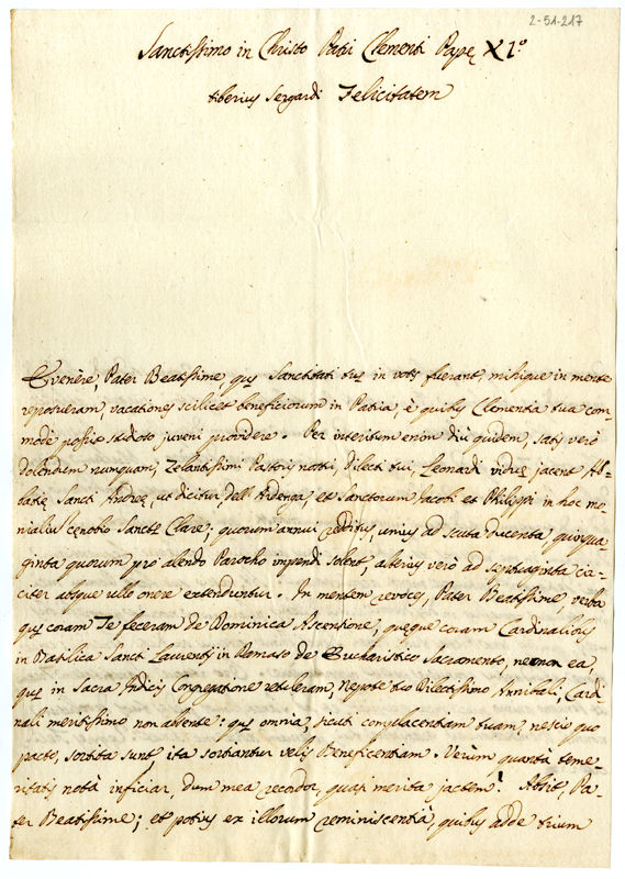 Lettera Tiberio Sergardi a papa Clemente XI (1700-1721)