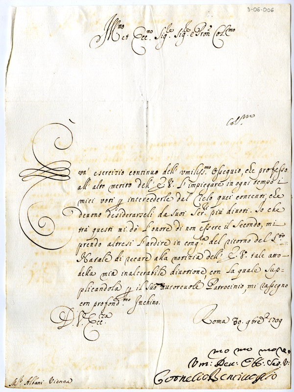 Lettera di Cornelio Bentivoglio ad Annibale Albani (1709 novembre 30)