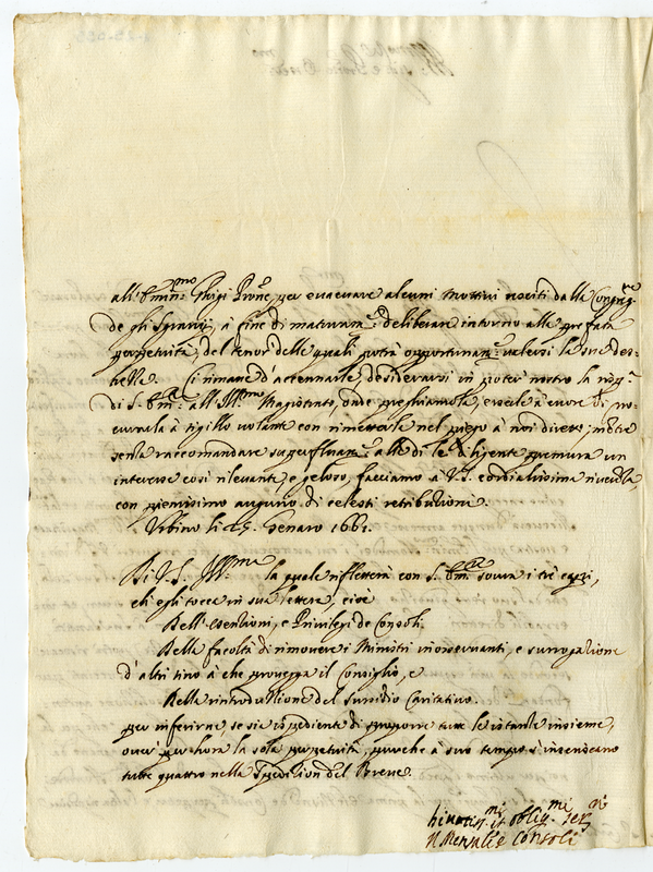Lettera del Mensale e Consoli a Carlo Albani (1661 gennaio 25)