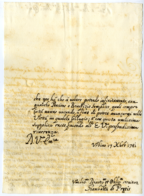 Lettera di Giambattista de Pretis al cardinale Annibale Albani (1731 dicembre 17)