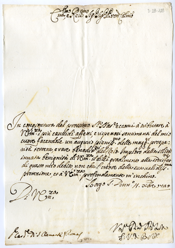 Lettera del vescovo di Borgo San Donnino al cardinale Annibale Albani (1724 dicembre 11)