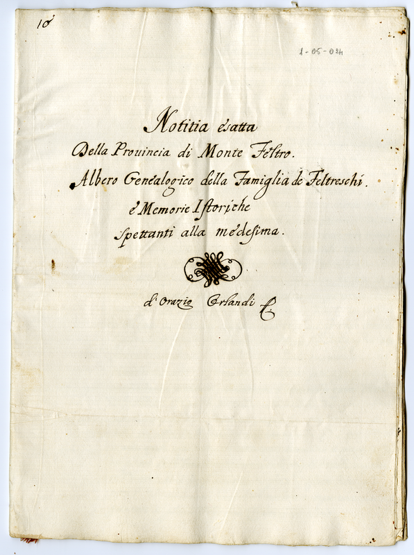 Notizia esatta della Provincia di Montefeltro. Albero genalogico della Famiglia de Feltreschi e memorie istoriche spettanti alla medesima. D'Orazio Orlandi