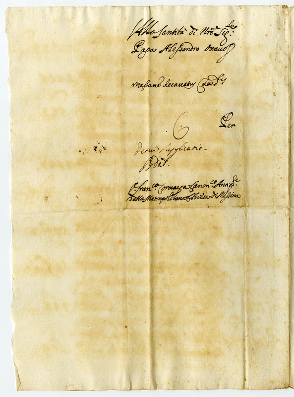 Lettera di Francesco Cornaya alla Santità di Papa Alessandro VIII (1689-1691)