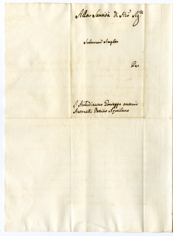 Lettera dell'Arcidiacono Giuseppe Antonio Antonelli a Clemente XI (1700-1721