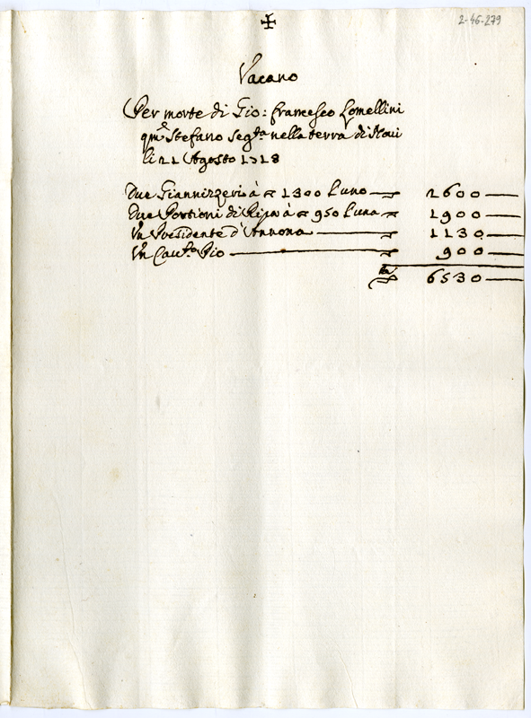 Beenfici vacanti per morte di Giovanni Francesco Lomellini (1718 agosto 21)