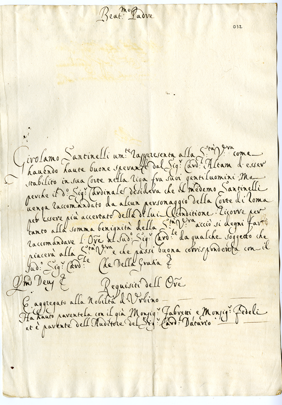 Supplica di Girolamo Santinelli a Clemente XI (1700-1721)