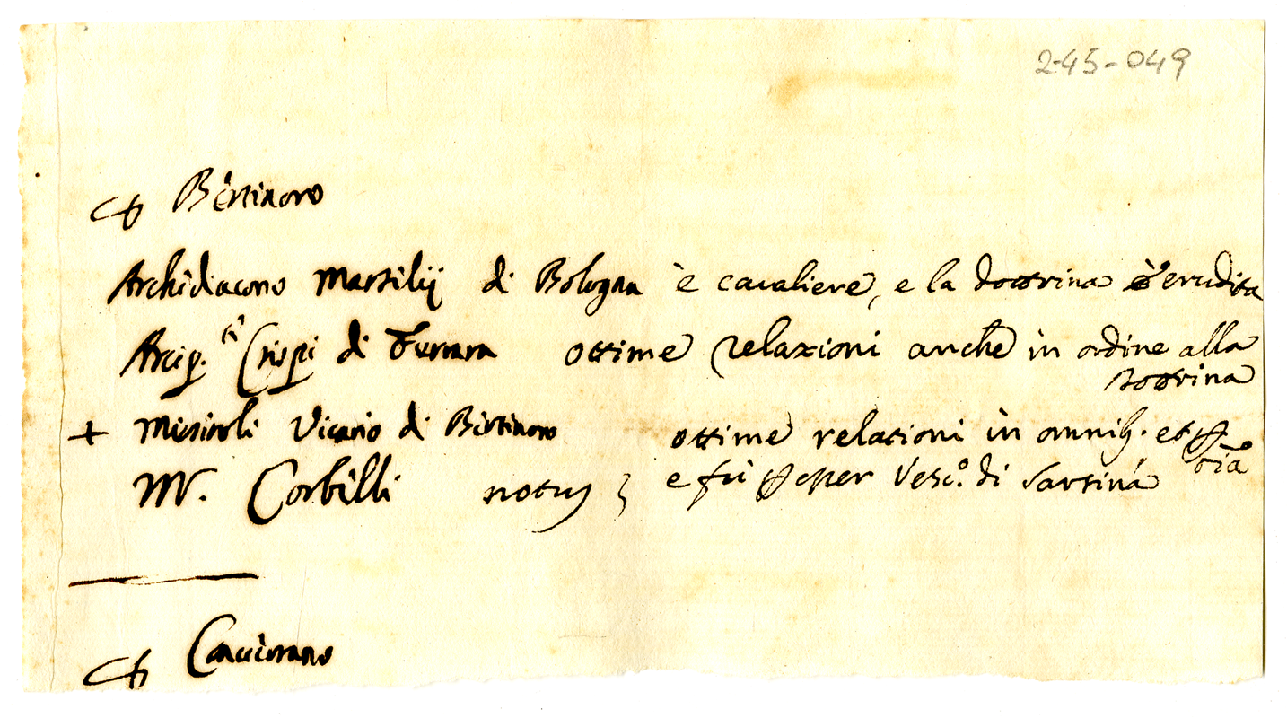Notizie fornite in risposta a apa Clemente XI su possibili candidati alla chiesa di Bertinoro (1700-1721)
