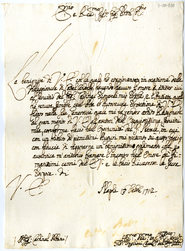 Lettera di Giovanni Troglioni al cardinale Annibale Albani (1712 dicembre 13)