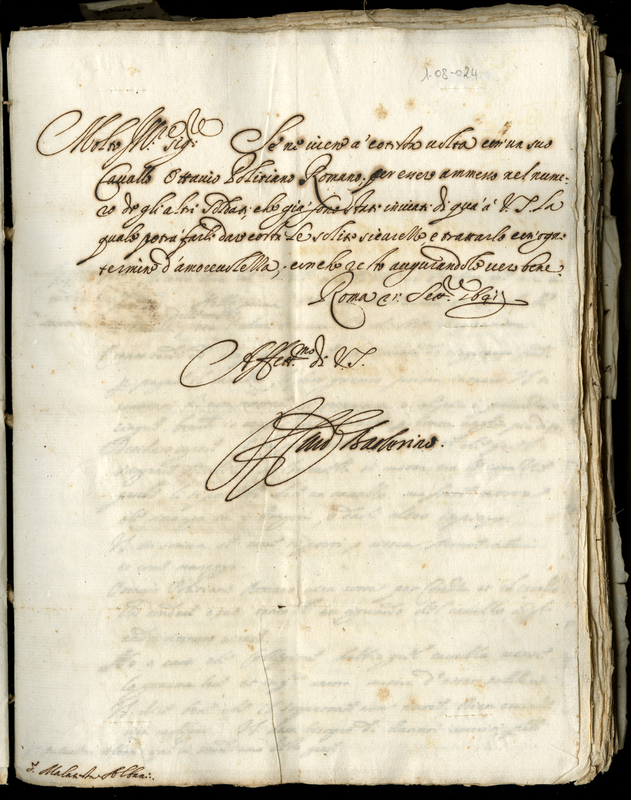 Il cardinale Barberini annuncia la venuta del romano Ottavio Poliziano con il suo cavallo e prega di trattarlo con tutta amorevolezza