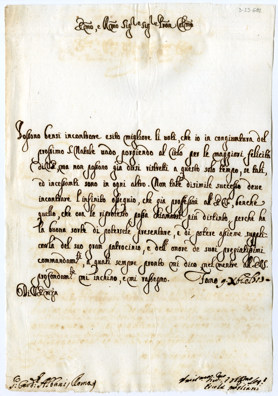 Lettera di Ercole Marliani al cardinale Annibale Albani (1717 dicembre 9)