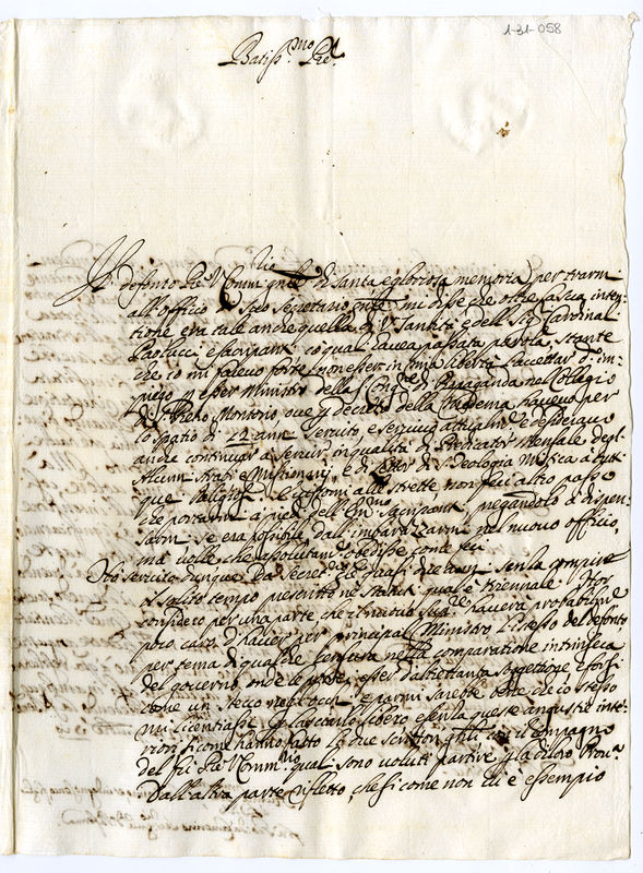 Lettera di fra Giovanni da Camerino a papa Clemente XI (1710 novembre 24)