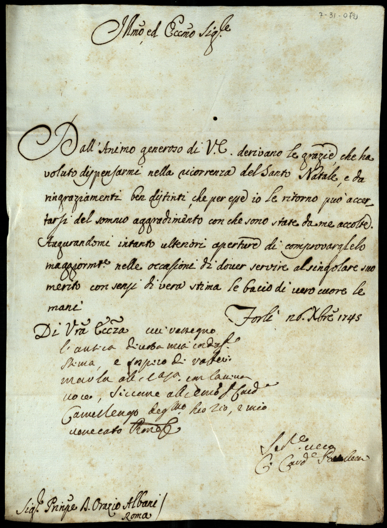 Lettere ricevute in Urbino dal signor Principe Don Orazio Albani ultimo di questo nome nell'anno 1745