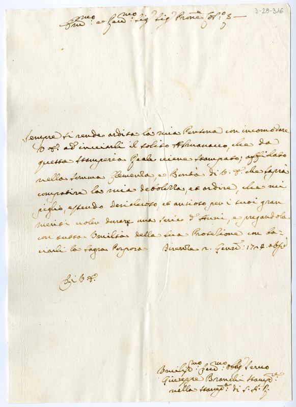 Lettera di Giuseppe Branchi al cardinale Annibale Albani (1724 gennaio 2)