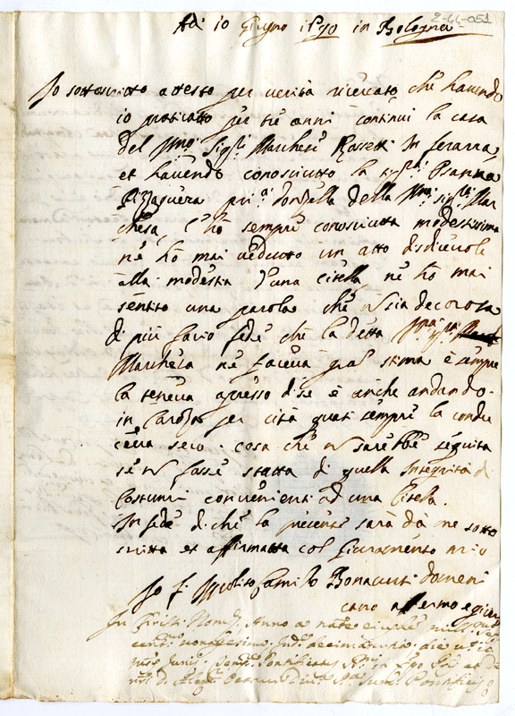 Fede di fra Ippolito Camillo Bonaccesi domenicano in favore di Osanna Pizzaguerra con atto notarile (1690 giugno 10)