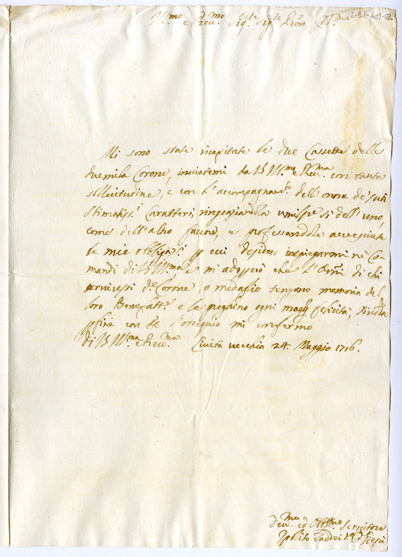 Lettera di Ippolito Taddei a un reverendo (1716 maggio 24)