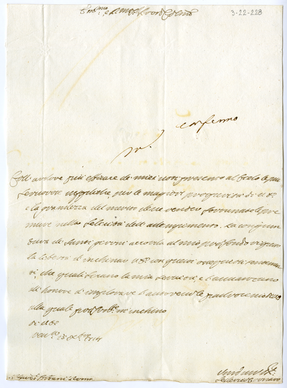 Lettera di Saverio Cornaro al cardinale Annibale Albani (1714 dicembre 15)