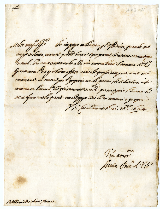 Lettera di Livia Della Rovere (1624 ottobre 21)