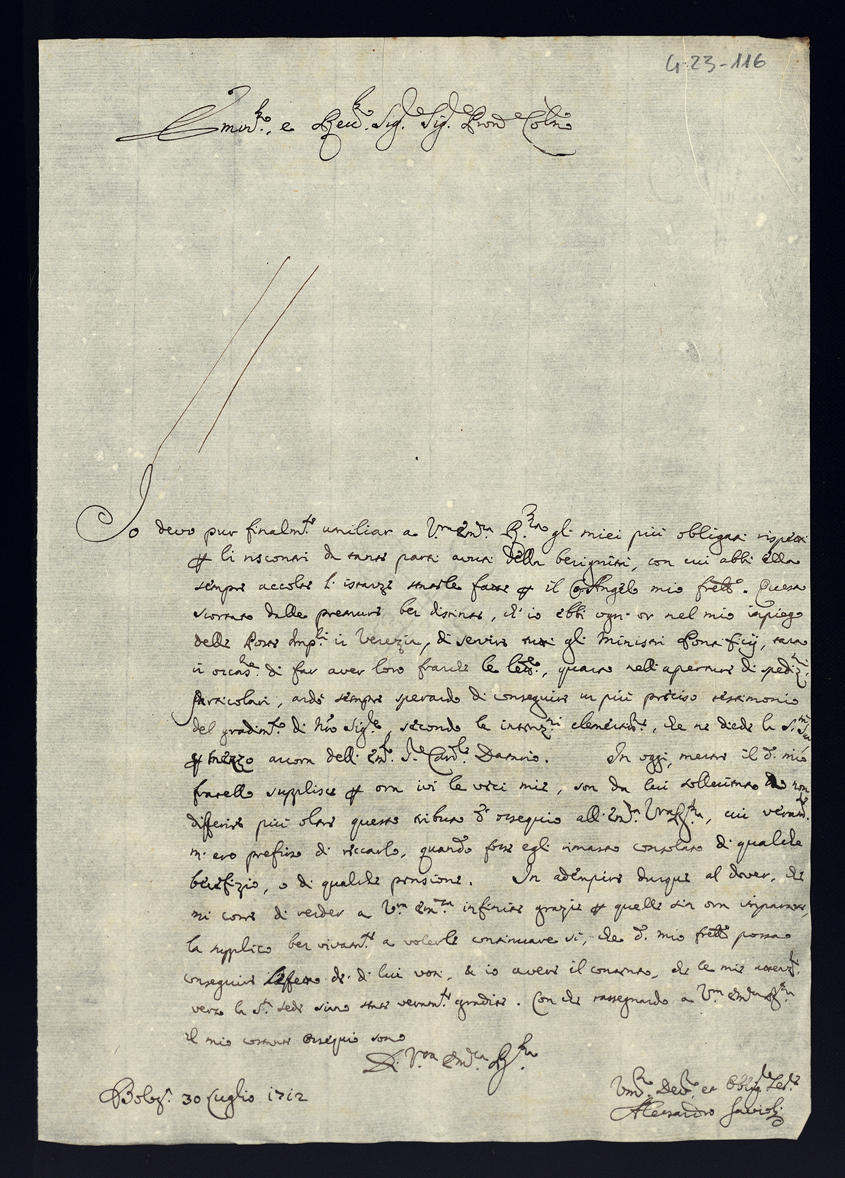 1712. Lettere di complimento e di negozio. Semestre secondo