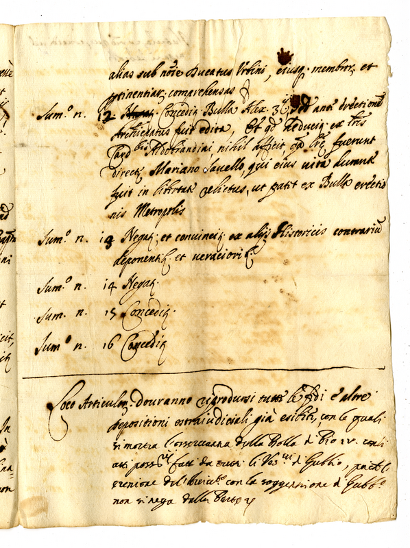 Nutola eorum, quae concedi, vel negari debent ex Sommario partis (1660-1680)