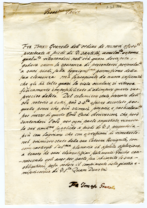 Supplica di fra Tommaso Granello al pontefice (1700-1721)