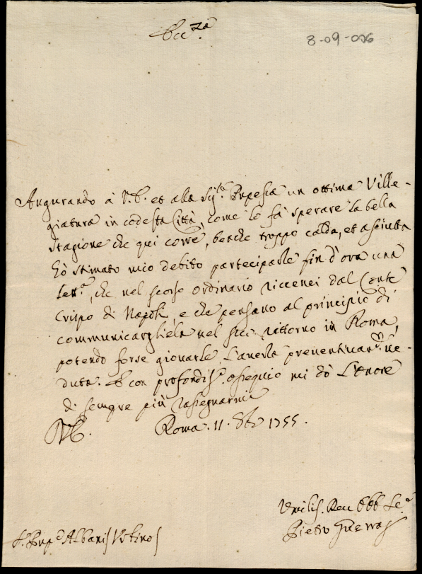 Lettere ricevute in Urbino dal signor Principe Don Orazio Albani ultimo di questo nome nell'anno 1755
