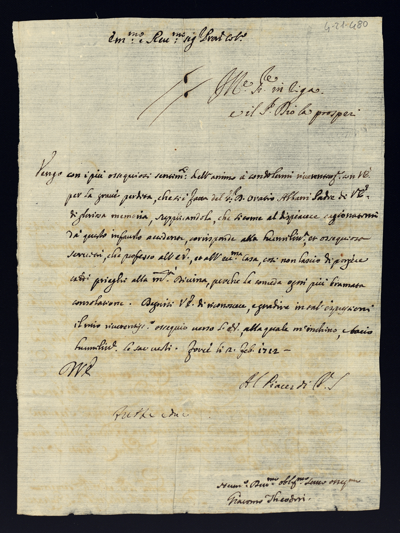 Lettere di condoglianza per la morte dell'eccellentissimo signor principe don Orazio Albani