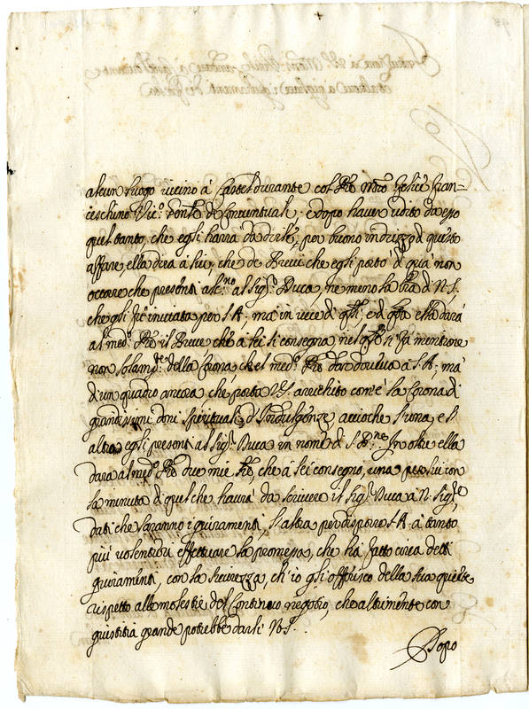 Il cardinale Barberini il 10 agosto 1624 scrive a monsignor Virile per indicare le modalità del giuramento attraverso cui i governatori del Montefeltro assicureranno la loro fedeltà alla Santa Sede Apostolica in occasione della devoluzione dello Stato di Urbino. Il documento presenta in calce la firma del segretario Ludovico Magalotti.