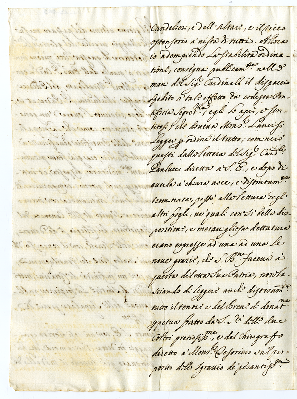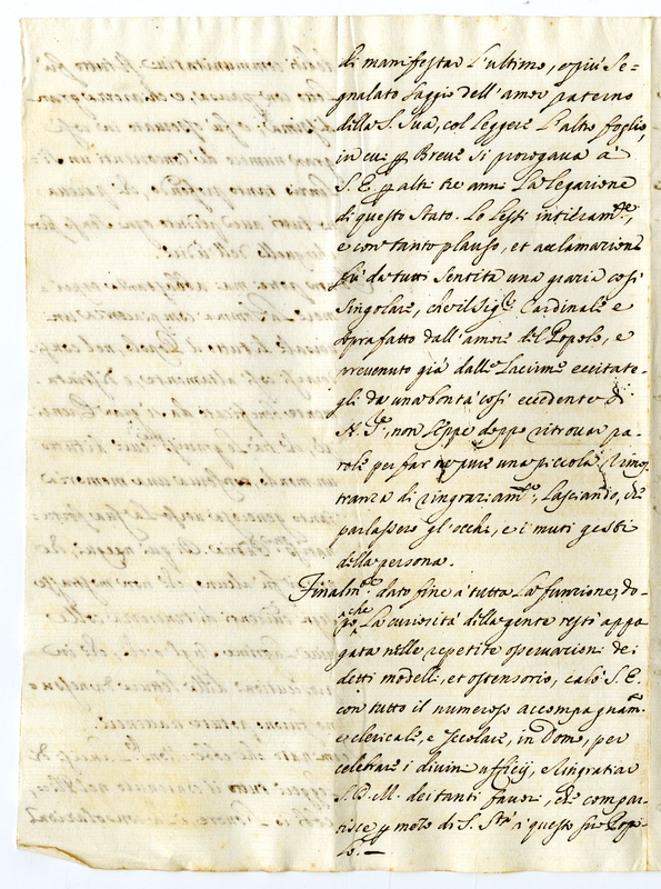 Relazione della prima congregazione avanti all'eminentissimo cardinale Legato alla viglia di S. Crescentino. Providenze del papa per Urbino