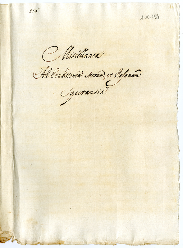 Miscellanea Ad Eruditionem Sacram, et Profanam Spectantia