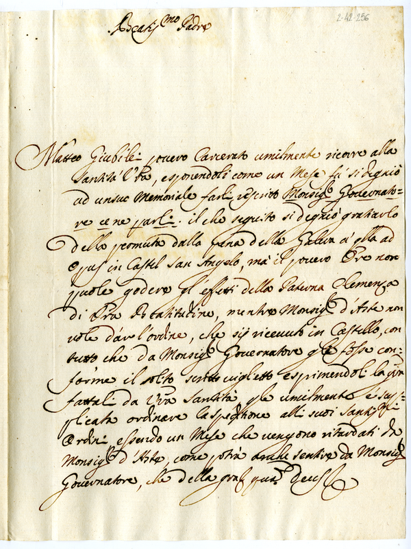 Lettera di Matteo Giubilei povero carcerato a papa Clemente XI (1712)