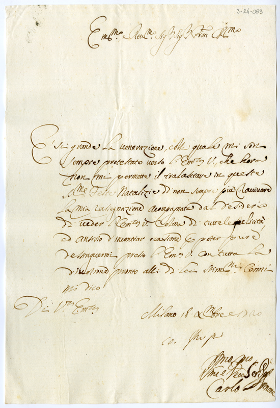Lettera di Carlo Annone al cardinale Annibale Albani (1720 dicembre 18)