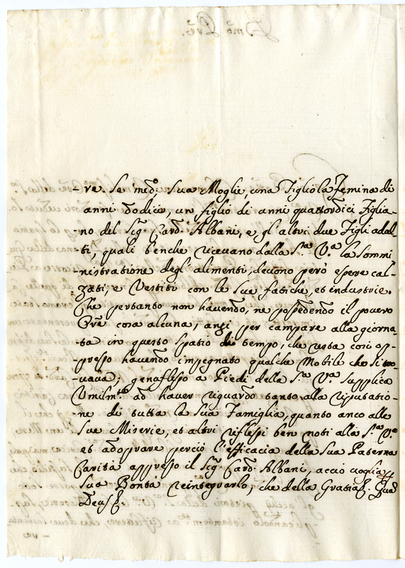 Sospeso dal cardinale Albani dall'esercizio della sua carica per calunnie chiede al pontefice di interporre la sua mediazione presso il nipote