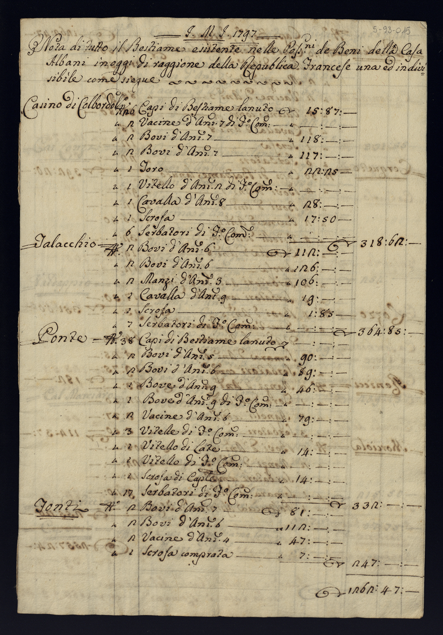 Note e stime dei beni sottratti alla Casa Albani durante l'invasione francese