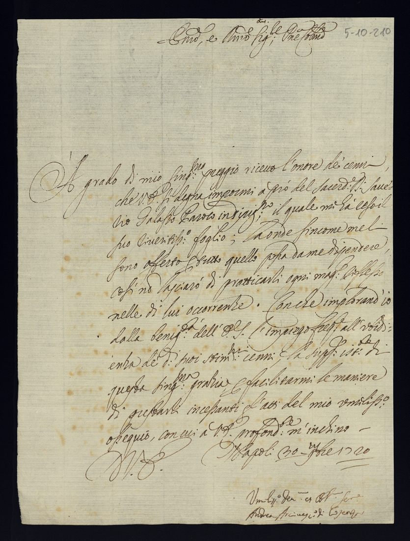 Lettere di raccomandazione. 1710 - 1723