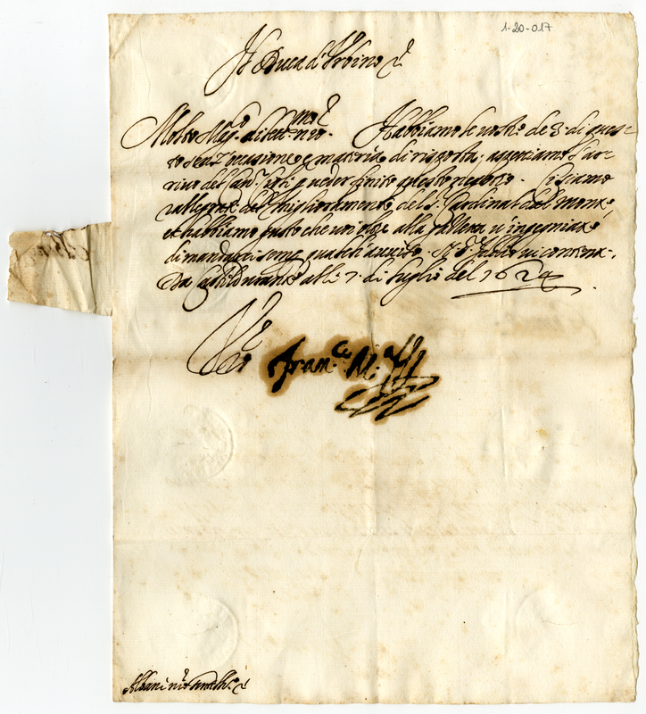 Lettera di Francesco Maria duca di Urbino a Orazio Albani (1624 luglio 7)